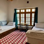 Do you identify with the saying “Always look on the bright side of life”? This homestay encourages optimism and brightness through its design. Yellow permeates throughout the building, covering the outer walls and inside. Bright wood also adds to the atmosphere. The living-dining rooms and the bedrooms are inviting and filled with comfortable furniture. A prayer room comes with gold statues and various other religious items, providing a spirit of calmness to complement unwavering optimism. Outside, the garden features a greenhouse, cattle, tall trees and a special building, namely a sorting-/storing-room. Depending on the season, it is filled with diverse nuts and fruits begging to be tasted.